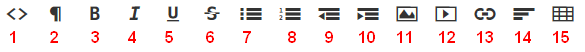 13 Link einfügen / entfernen 14 Ausrichtung ändern 15 Tabelle einfügen / bearbeiten |